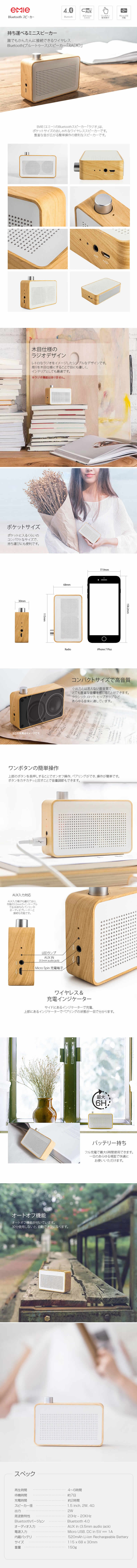 ■EMIE(エミー)のBluetoothスピーカー「ラジオ」は、ポケットサイズのおしゃれなワイヤレススピーカーです。2W出力でも豊富な音が広がる簡単操作の便利なスピーカーです。