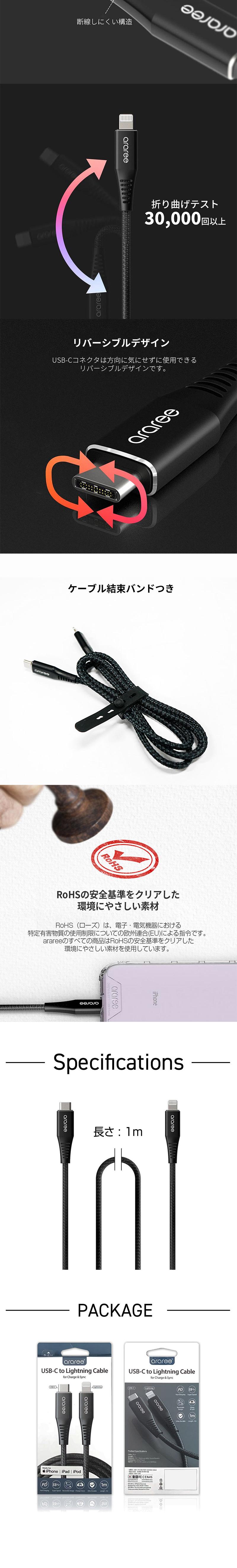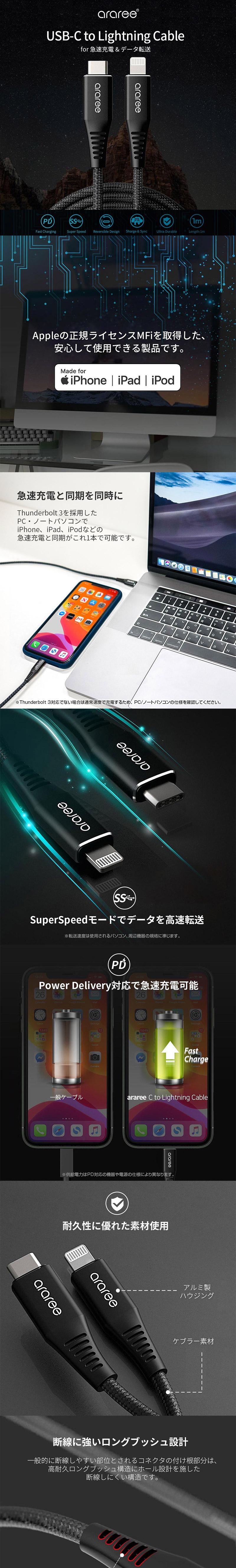 『 araree USB-C to Lightning ケーブル 』 Apple MFi認証取得