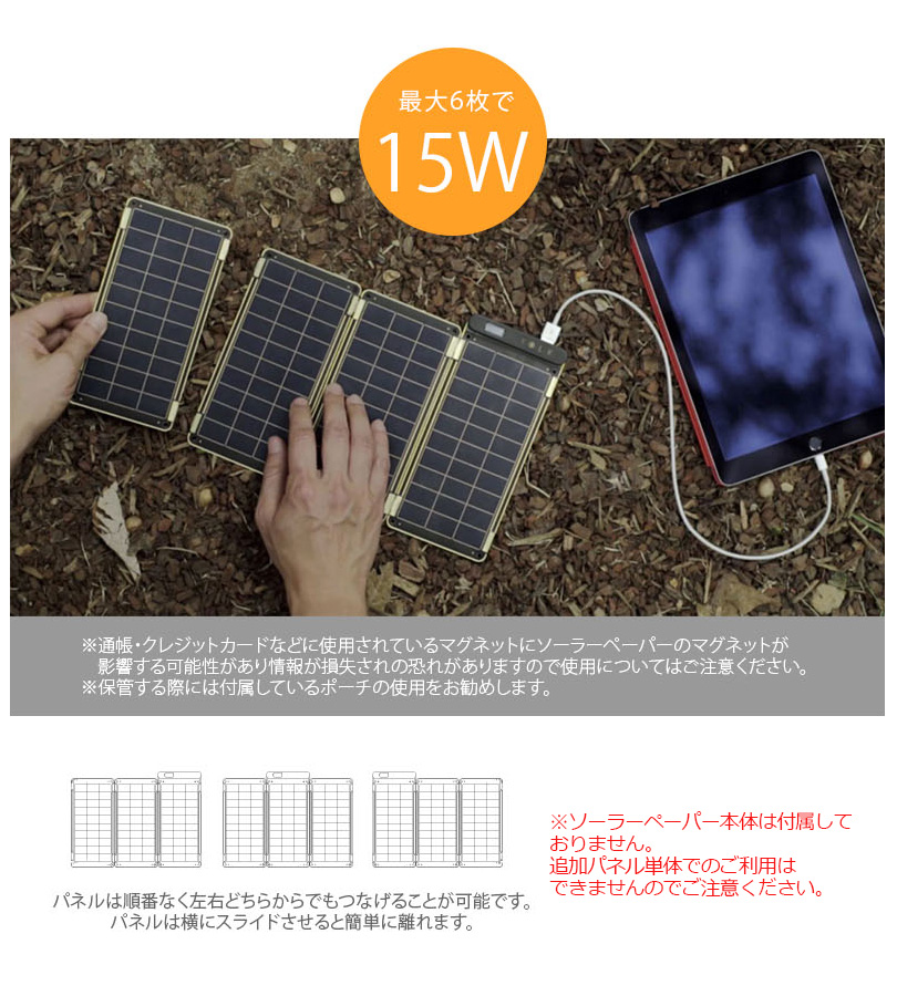 ※ソーラーペーパー本体は付属しておりません。 追加パネル単体でのご利用はできませんのでご注意ください。