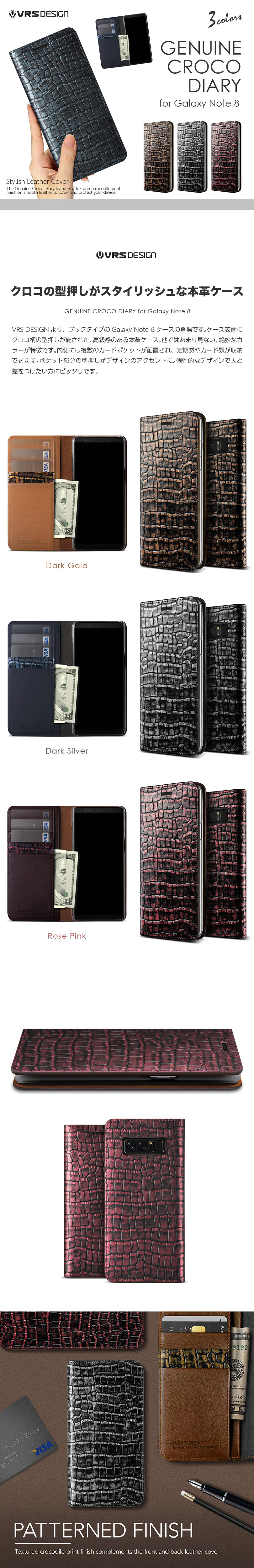 『VERUS Genuine Croco Diary』 Galaxy Note8 ケース 手帳型 本革 レザー