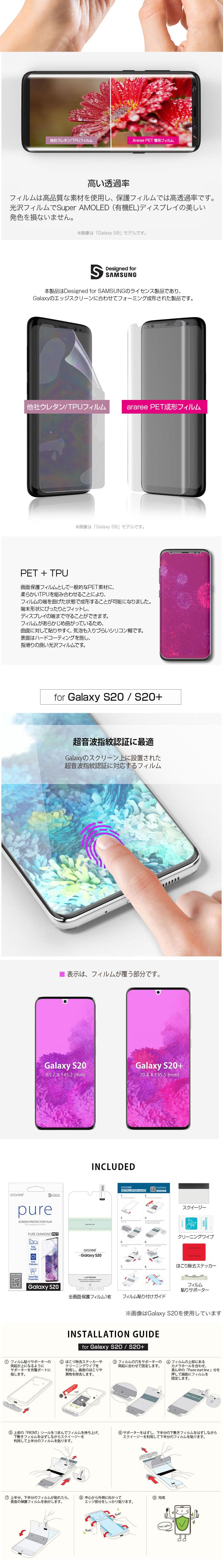 商品名 全画面保護フィルム PURE DIAMOND for GalaxyS20 case ( ギャラクシーS20 ケース ) ・ GalaxyS20+ case ( ギャラクシーS20 プラス ケース )