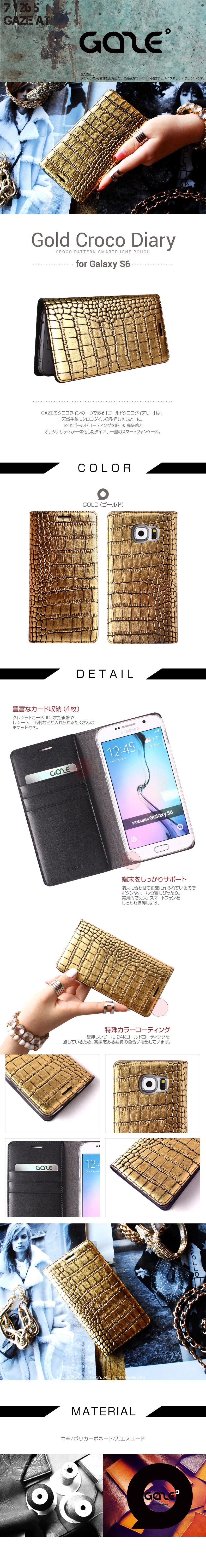 『GAZE Gold Croco Diary』 Galaxy S6 GalaxyS6 ギャラクシーs6 ギャラクシー SC-05G カバー