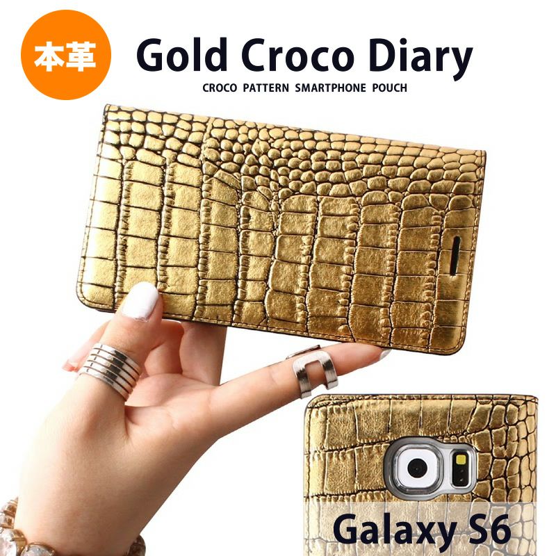 商品名 Galaxy S6 「docomo SC-05G」 手帳型 本革 レザー ケース Gold Croco Diary