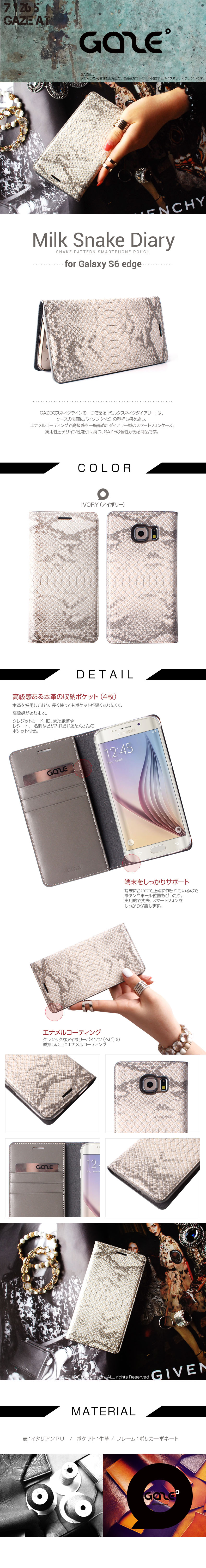 『GAZE Milk Snake Diary』 Galaxy S6 edge ケース 手帳型 レザー
