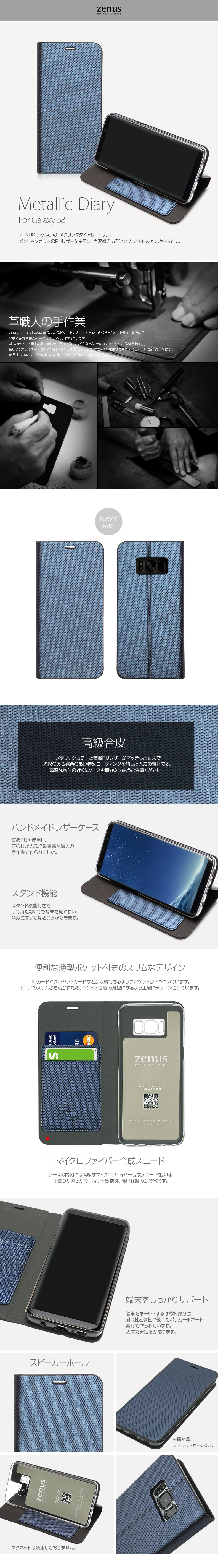 『ZENUS Metallic Diary』 Galaxy S8 ケース 手帳型 レザー おすすめ