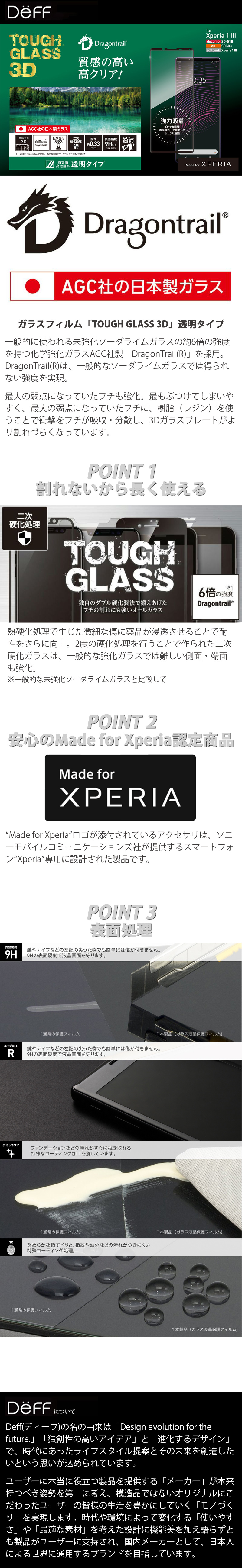 『Deff TOUGH GLASS 3D for Xperia 1 III 透明タイプ』 Xperia 1 III 画面保護 フィルム ガラスフィルム