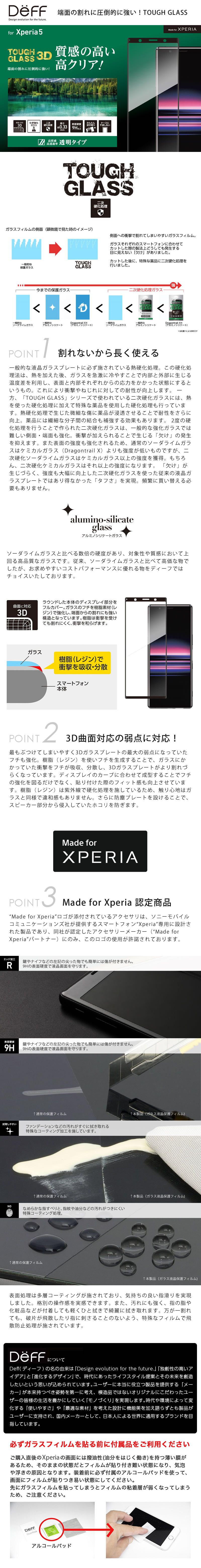『Deff TOUGH GLASS 3D 高光沢 透明 クリア タイプ』 Xperia 5 ガラスフィルム 全面保護