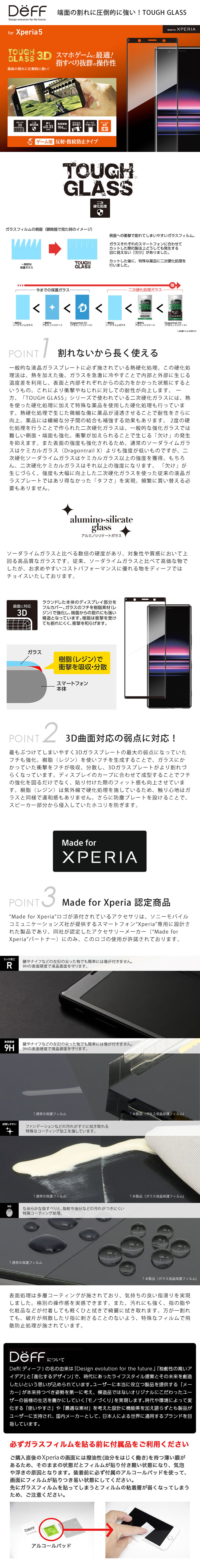 『Deff TOUGH GLASS 3D さらさら マット タイプ』 Xperia 5 ガラスフィルム 全面保護