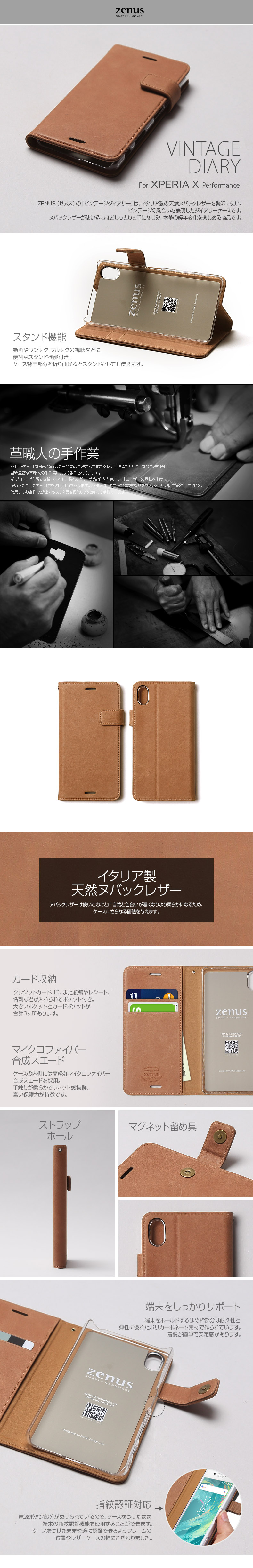 『ZENUS Vintage Diary』 Xperia X Performance ケース 手帳型 本革 レザー SO-04H SOV33 502SO