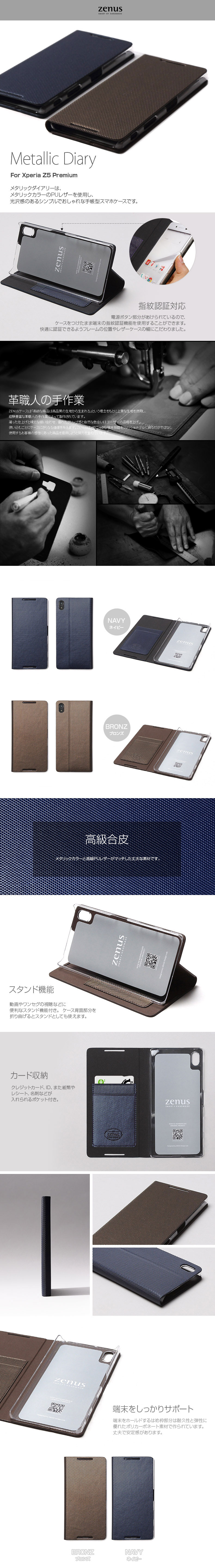『Zenus Metallic Diary for Xperia Z5 Premium』 Xperia Z5 Premium 「docomo SO-03H」 手帳型 レザー ケース
