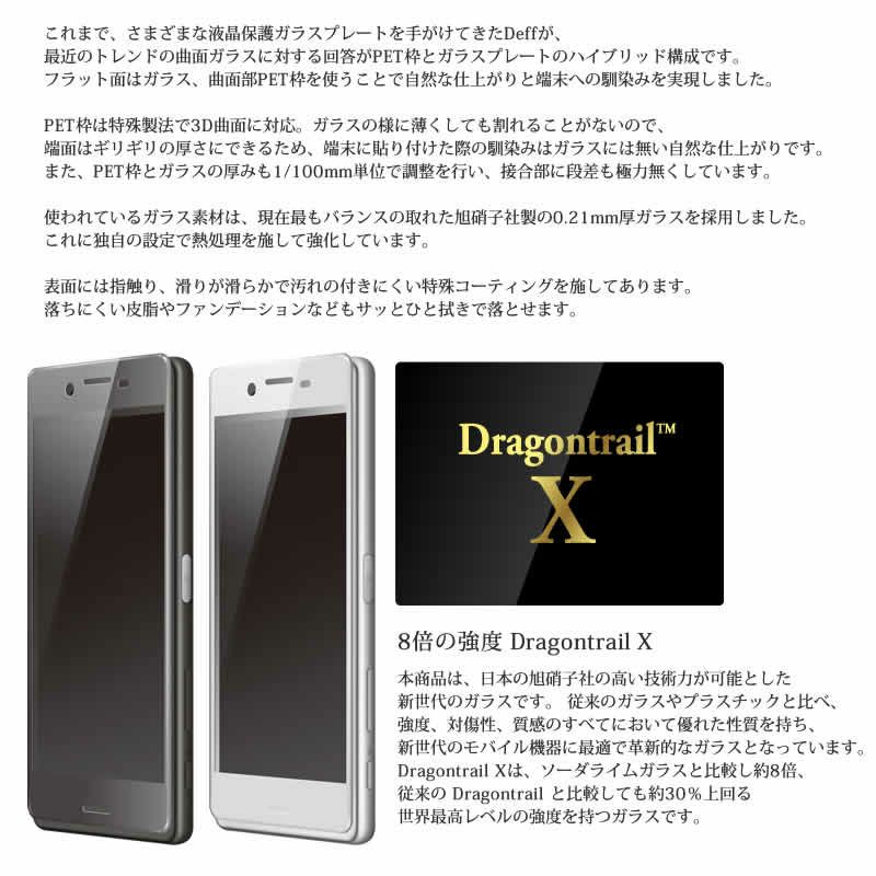 『Deff Hybrid Glass Screen Protector 3D サファイアARコート Dragontrail-X』 Xperia X Performance フィルム 強化ガラス 全面保護 SO-04H ケース SOV33 カバー 502SO