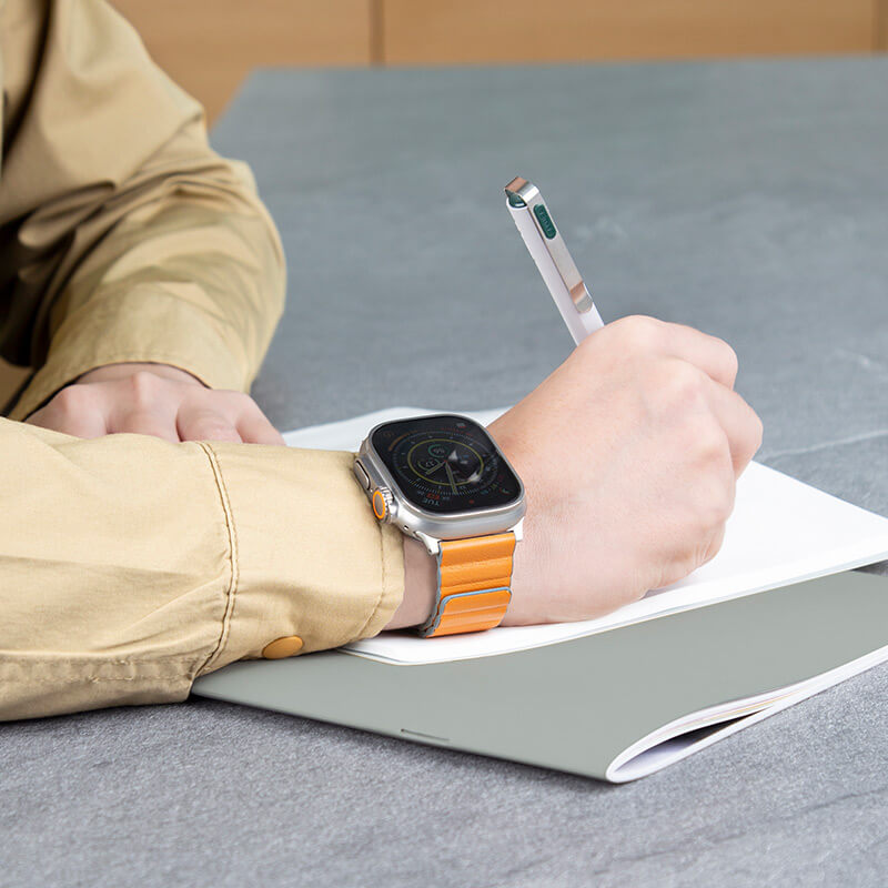 特殊な防水加工を施した上質な本革を採用し、シリコン素材と組み合わせて設計。手洗いや水仕事、急な雨、スポーツやレジャーシーンなど、水濡れを気にせず使えるオールラウンドなバンドを目指しました。