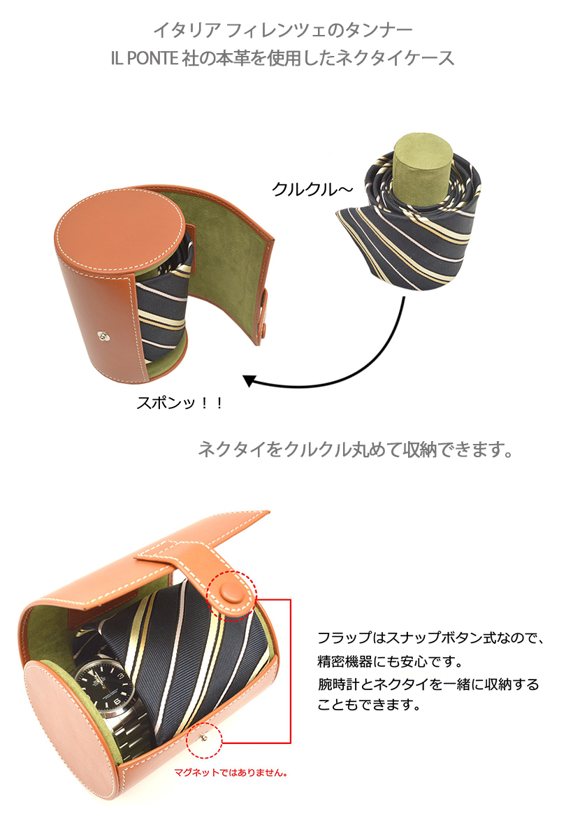■ 円柱型の携帯ネクタイケースです。くるくる巻いて収納してください。出張時の必需品!ネクタイをしわにすることなく収納できます。腕時計も一緒に収納可能です。