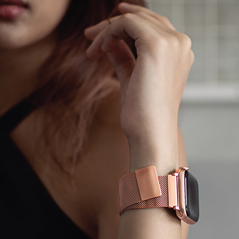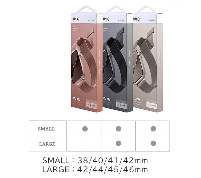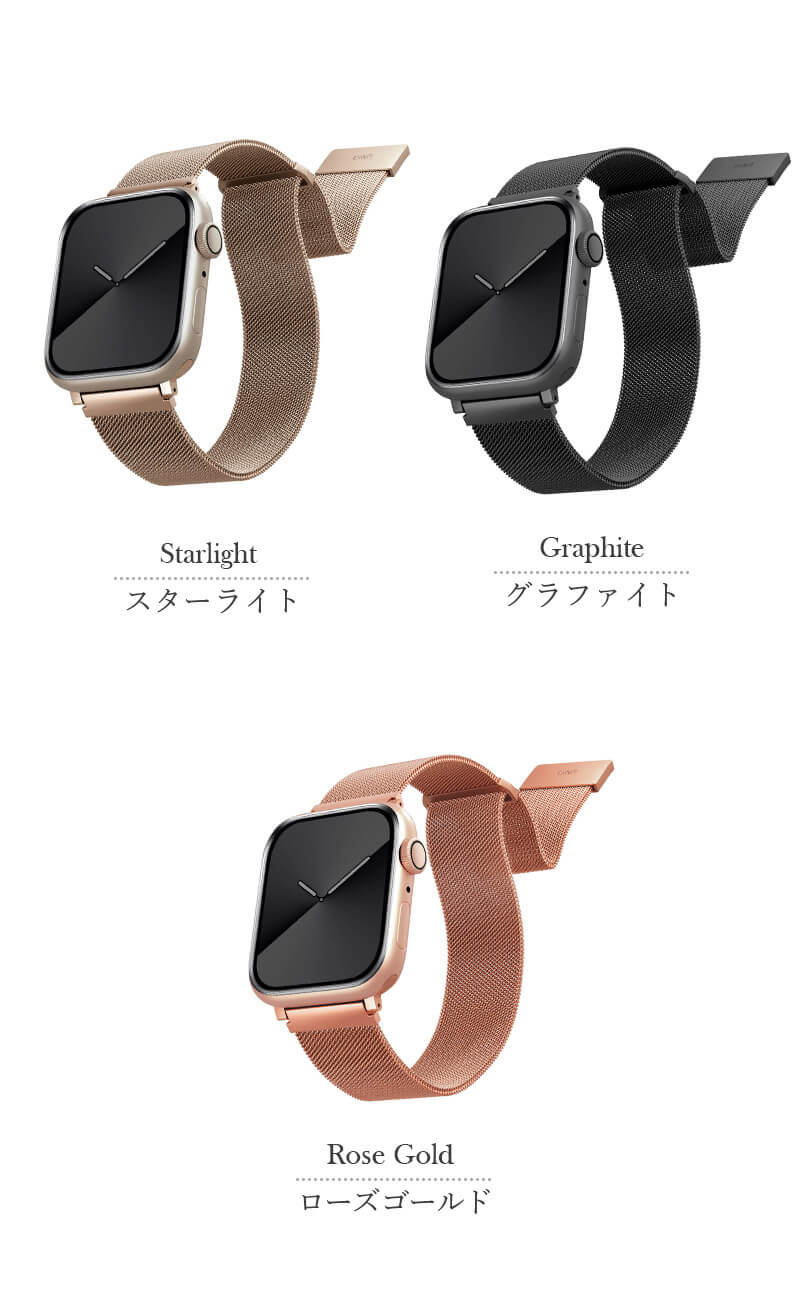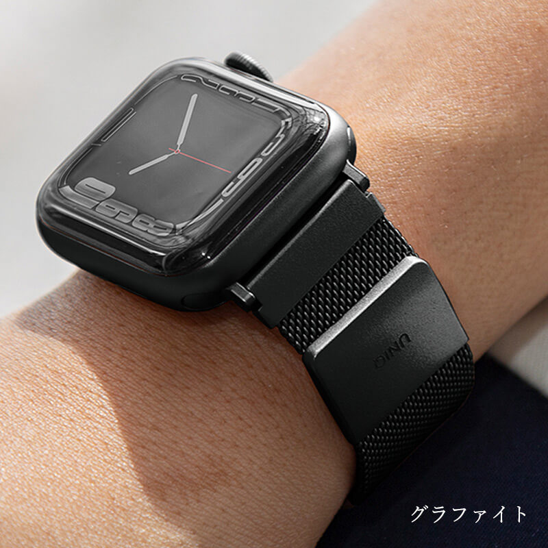 世界47ヶ国で展開するグローバルブランド「UNIQ」のApple Watchバンド「Dante」です。サビに強く、金属アレルギーが起こりにくいステンレスを採用。