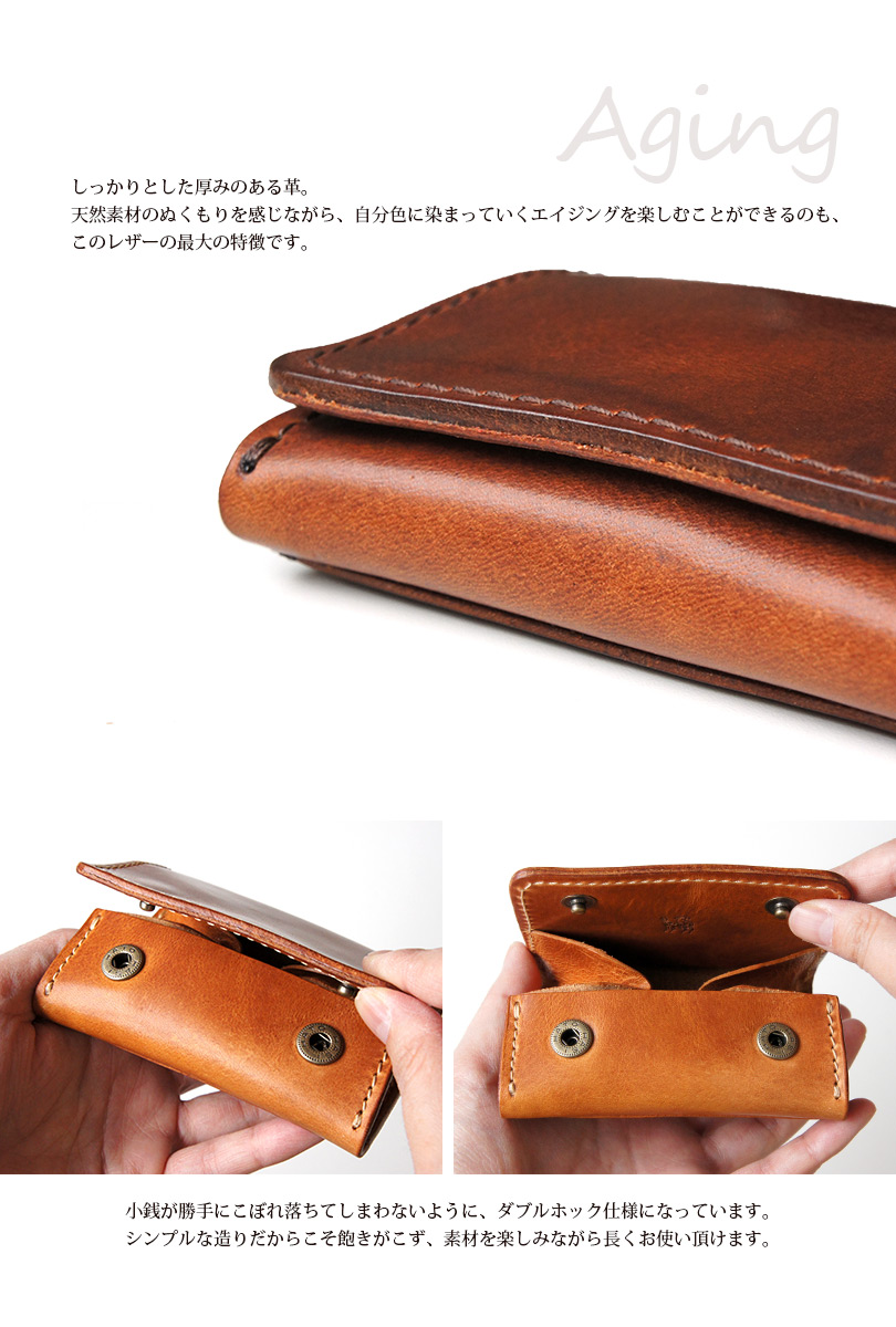 ■小銭が勝手にこぼれ落ちてしまわないように、ダブルホック仕様になっています。シンプルな造りだからこそ飽きがこず、素材を楽しみながら長くお使い頂けます。