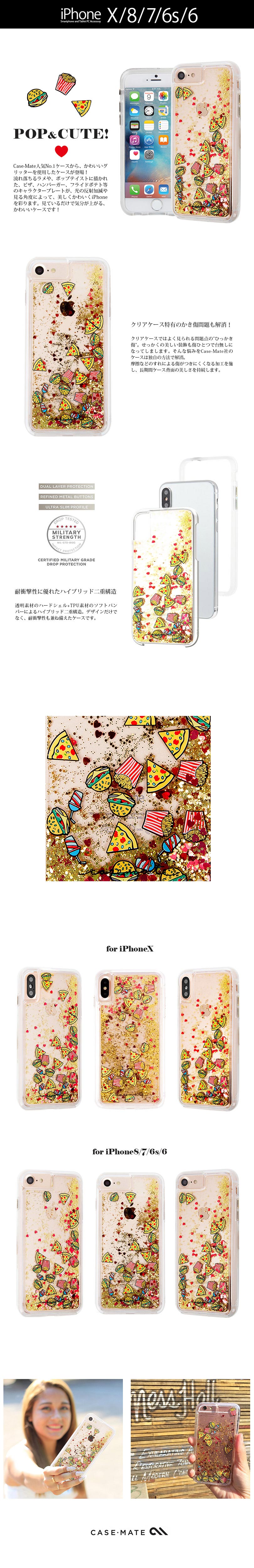 ■Case-Mate人気No.1ケースから、かわいいグリッターを使用したケースが登場!流れ落ちるラメや、ポップテイストに描かれた、ピザ、ハンバーガー、フライドポテト等のキャラクタープレートが、光の反射加減や見る角度によって、美しくかわいくiPhoneを彩ります。見ているだけで気分が上がる、かわいいケースです!
