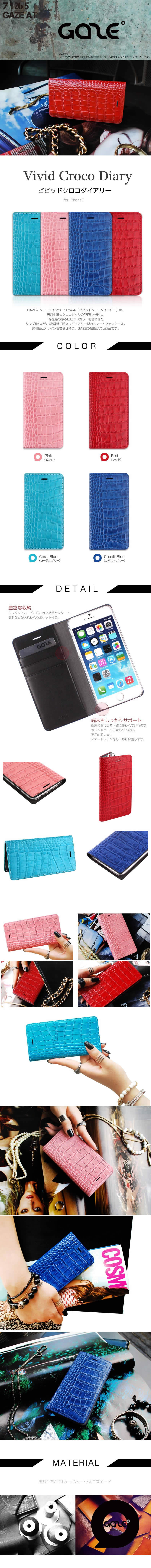 商品名 【iPhone6s / iPhone6 ケース】 GAZE Vivid Croco Diary(ビビッドクロコダイアリー)