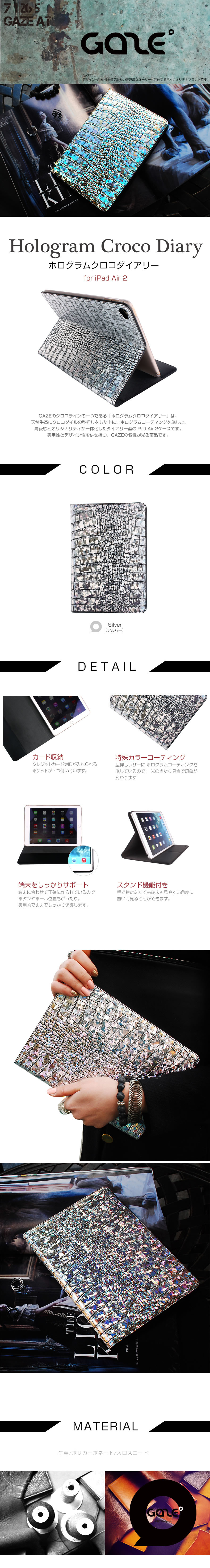 『GAZE Hologram Croco Diary』 iPad Air 2ファブリック レザー ケース