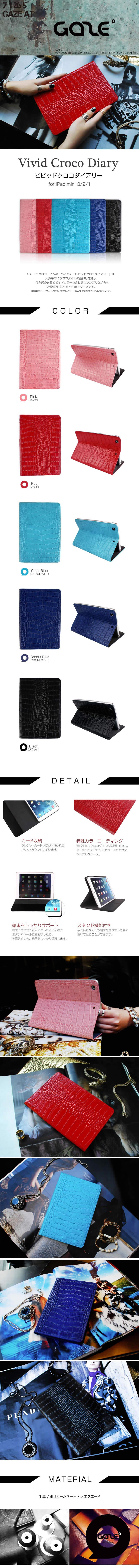 『GAZE Vivid Croco Diary』 iPad mini 3 ケース / iPad mini 2 ケース / iPad mini ケース 本革 牛革 クロコ