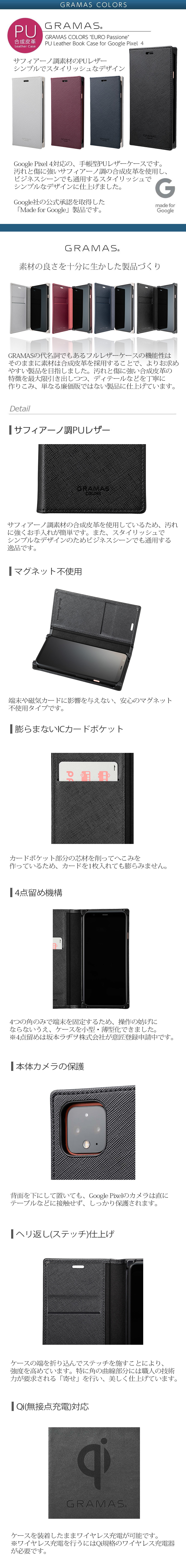 『GRAMAS COLORS "EURO Passione" PU Leather Book Case for Google Pixel 4』 手帳型 スマホケース レザー