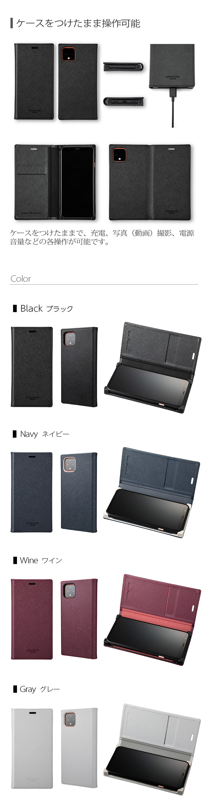 商品特長 ■ 手帳型ブランド GRAMAS COLORS の 横開き 手帳ケース です。