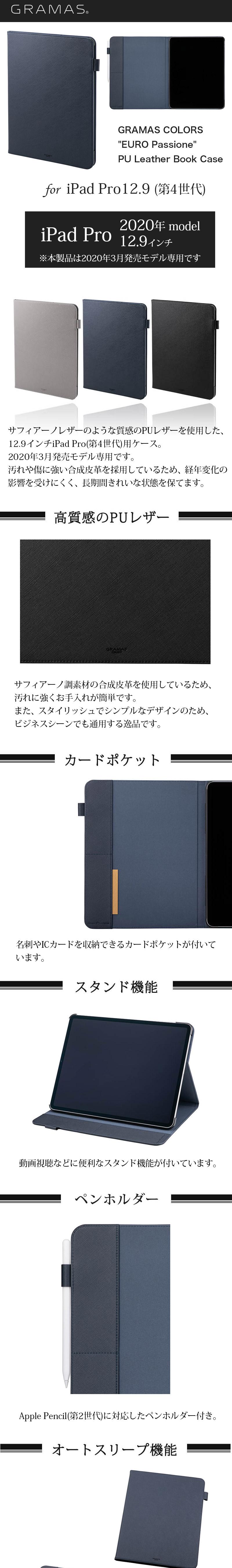 商品名 GRAMAS COLORS "EURO Passione" Book PU Leather Case for iPad Pro 12.9 2020 第4世代 case ( アイパッド プロ 12.9 2020 ケース )