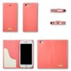 ■ツヤ感と独特な硬質感が魅力のエナメル素材を採用しました。表地には女性らしい淡いカラーを、内側のカードホルダー、iPhoneを装着するフレームには柔らかい雰囲気のオフホワイトを合わせています。コーナーの曲線やコバ、縫製などの細部まで丁寧に仕上げ、女性らしさを追求しました。