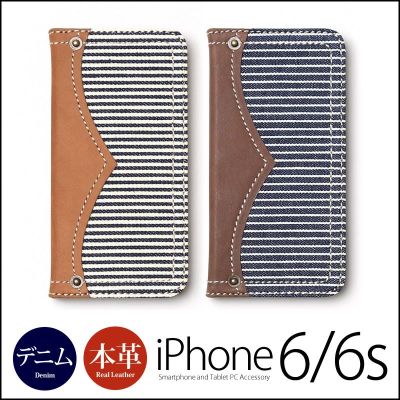 商品名 【iPhone6s / iPhone6 手帳型 デニム 本革 ケース】 Denim Stripe Diary