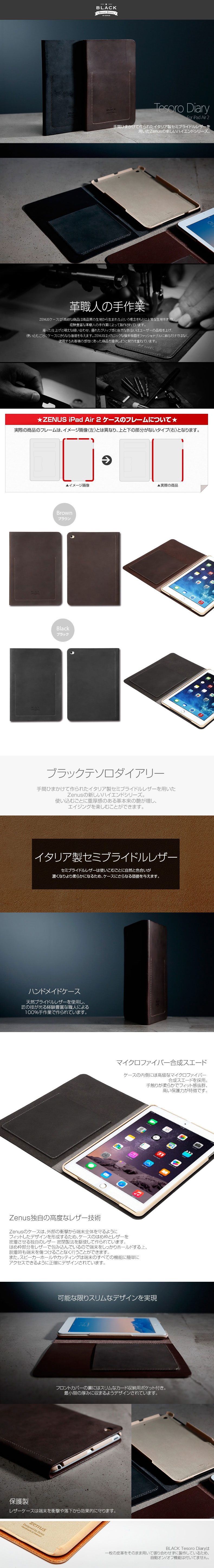 『ZENUS Black Tesoro Diary』 iPad Air 2 アイパッドエアー2 iPadair2 iPad Air2 本革 カバー