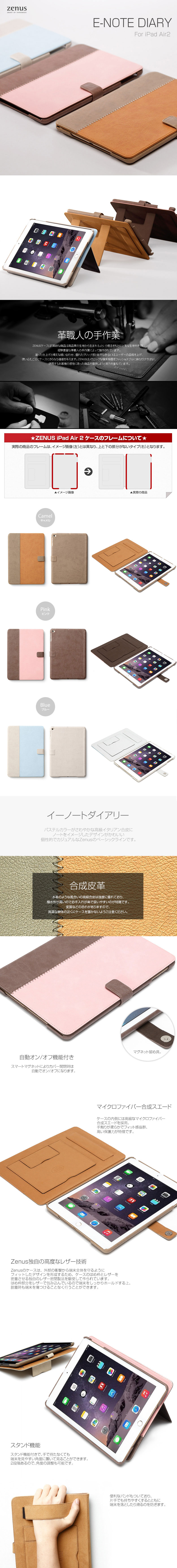 『ZENUS E-Note Diary』 iPad Air 2 アイパッドエアー2 iPadair2 iPad Air2 カバー 革