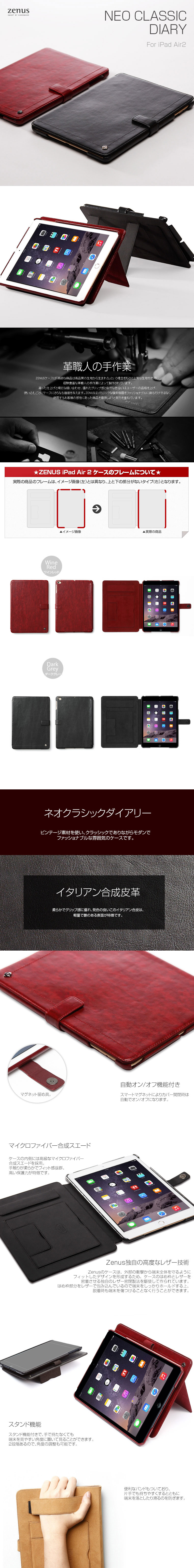 『ZENUS Neo Classic Diary』 iPad Air 2 アイパッドエアー2 iPadair2 iPad Air2 カバー 革