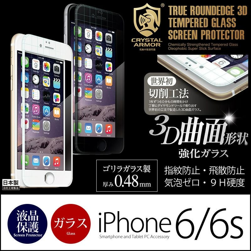 『CRYSTAL ARMOR True RoundEdge 3D』 iPhone6s/6 液晶保護 フィルム 強化ガラス 0.48mm 3D曲面 ホワイト/ブラック