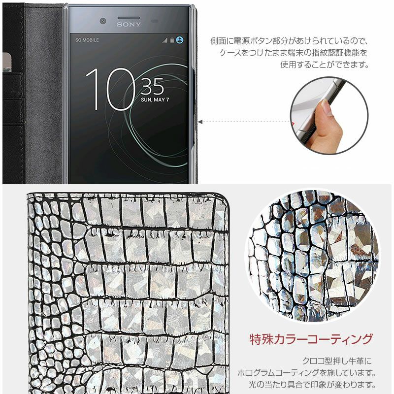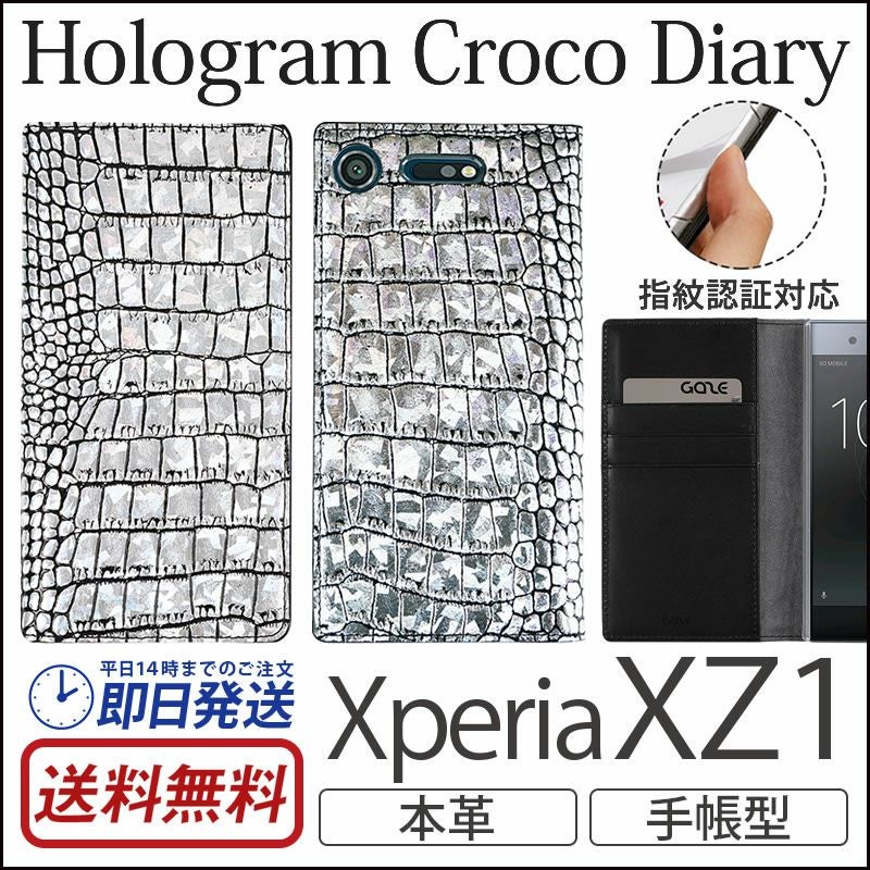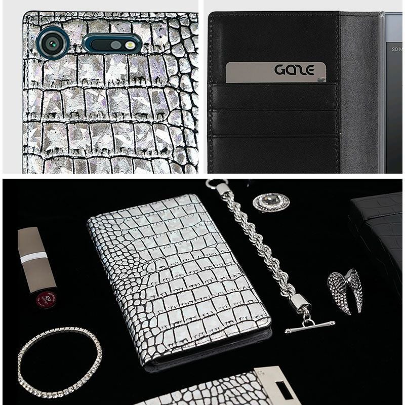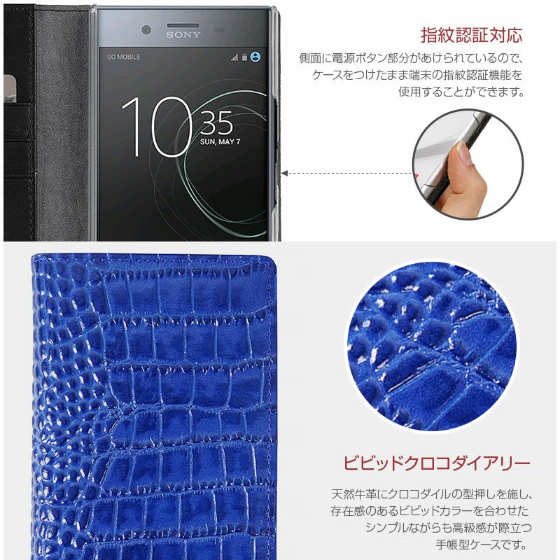 『GAZE Vivid Croco Diary』 Xperia XZ1 ケース 手帳 本革 レザー