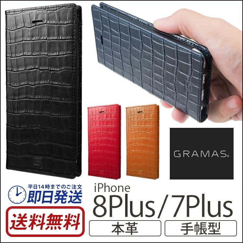 『GRAMAS グラマス Croco Patterned Full Leather Case GLC6146P』 iPhone8 Plus / iPhone7 Plus ケース 手帳型 本革 レザー