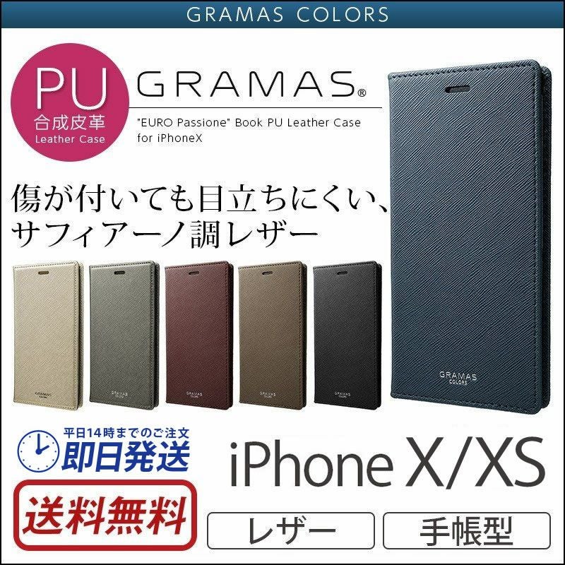 『GRAMAS COLORS EURO Passione Book PU Leather Case』 iPhone XS ケース / iPhone X ケース サフィアーノ調 レザー