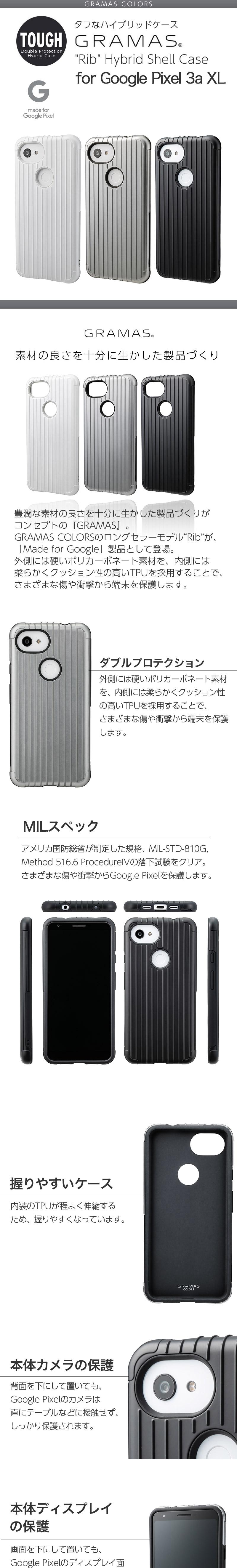 【耐衝撃★米軍MIL規格】GRAMAS COLORS Rib Hybrid Shell Case for Google Pixel 3a XL スマホケース