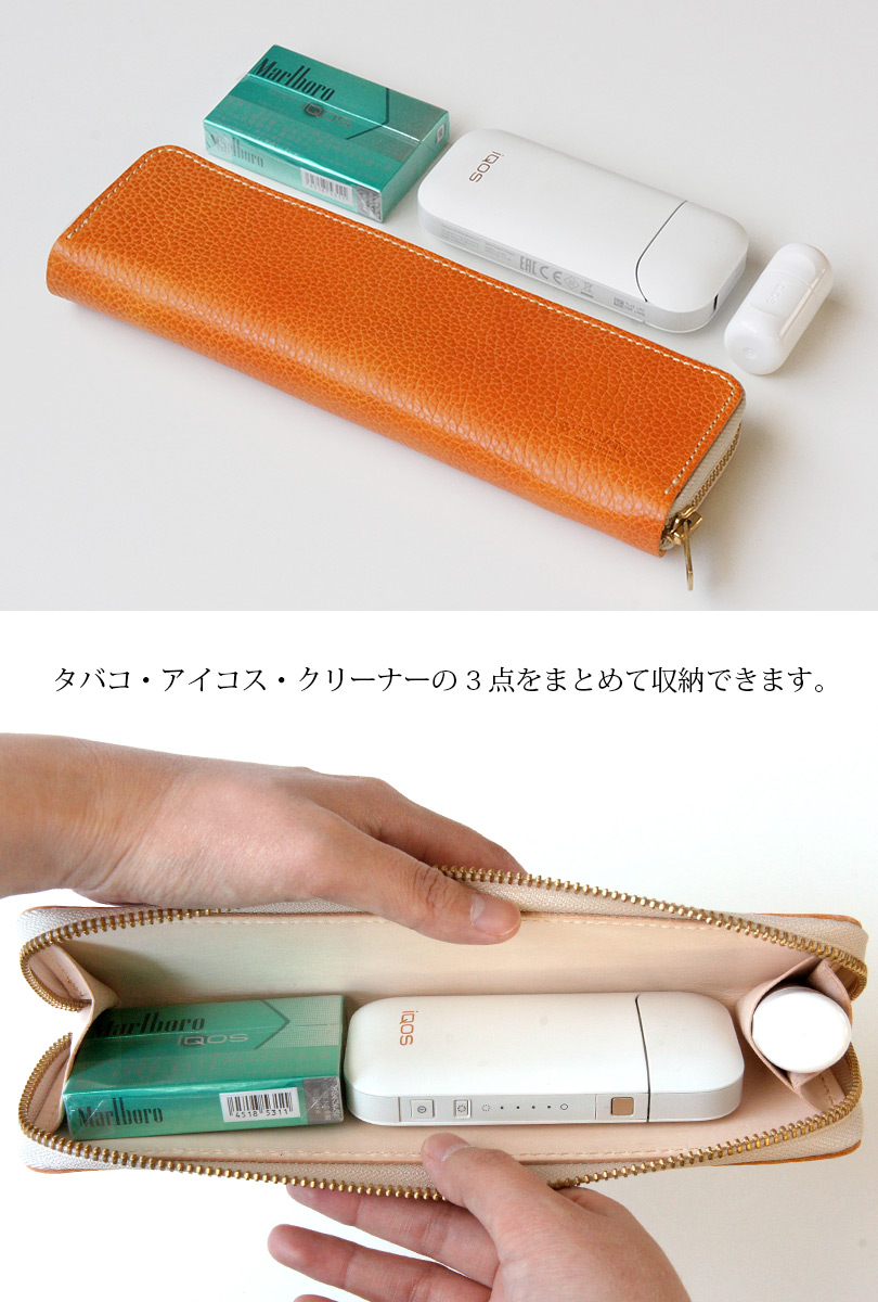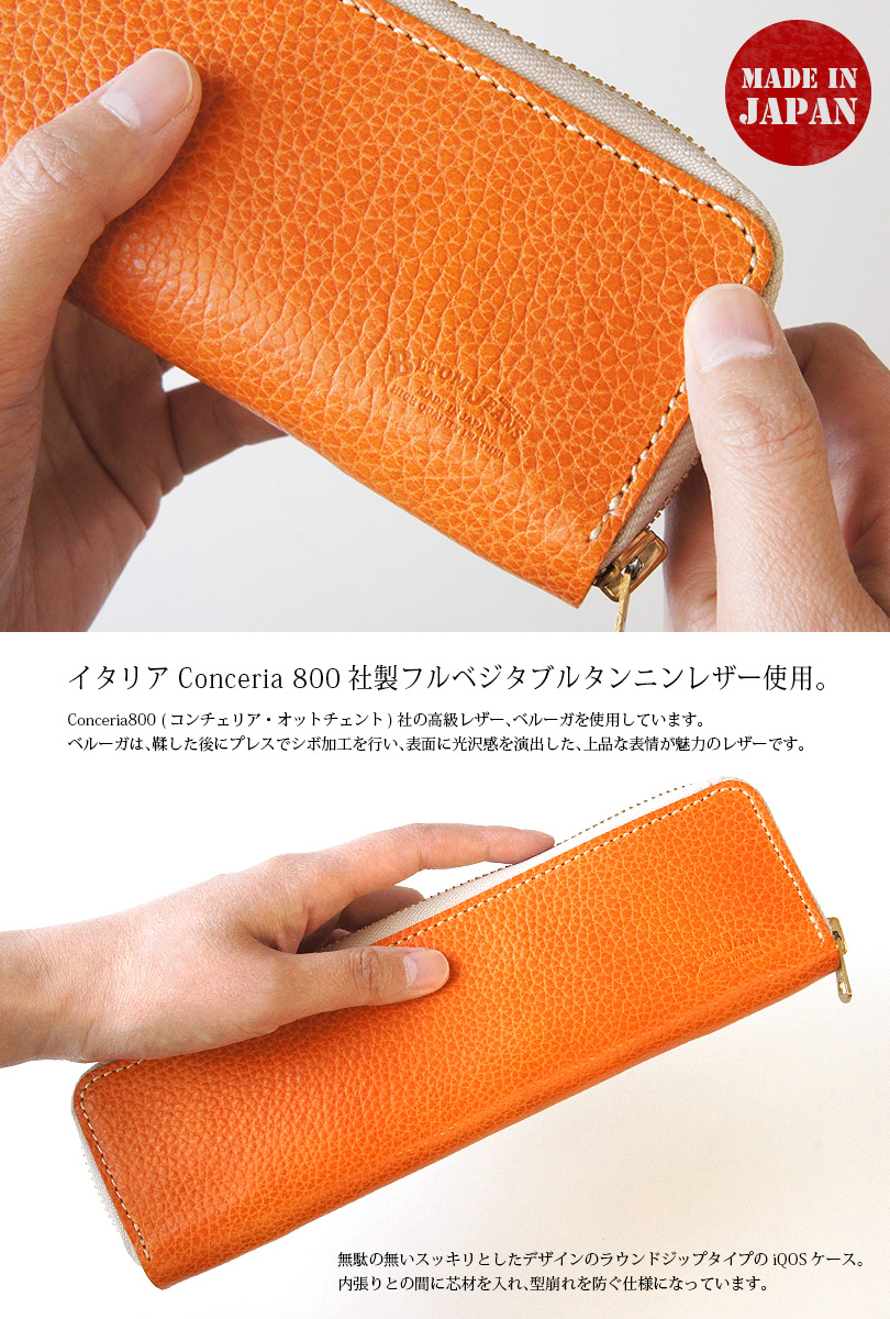 日本製 イタリアンレザー ラウンドジップ アイコスケース
