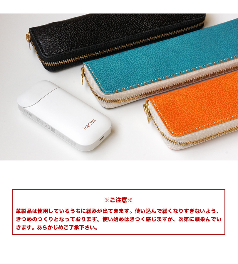 ■無駄の無いスッキリとしたデザインのラウンドジップタイプのiQOSケース。内張りとの間に芯材を入れ、型崩れを防ぐ仕様になっています。