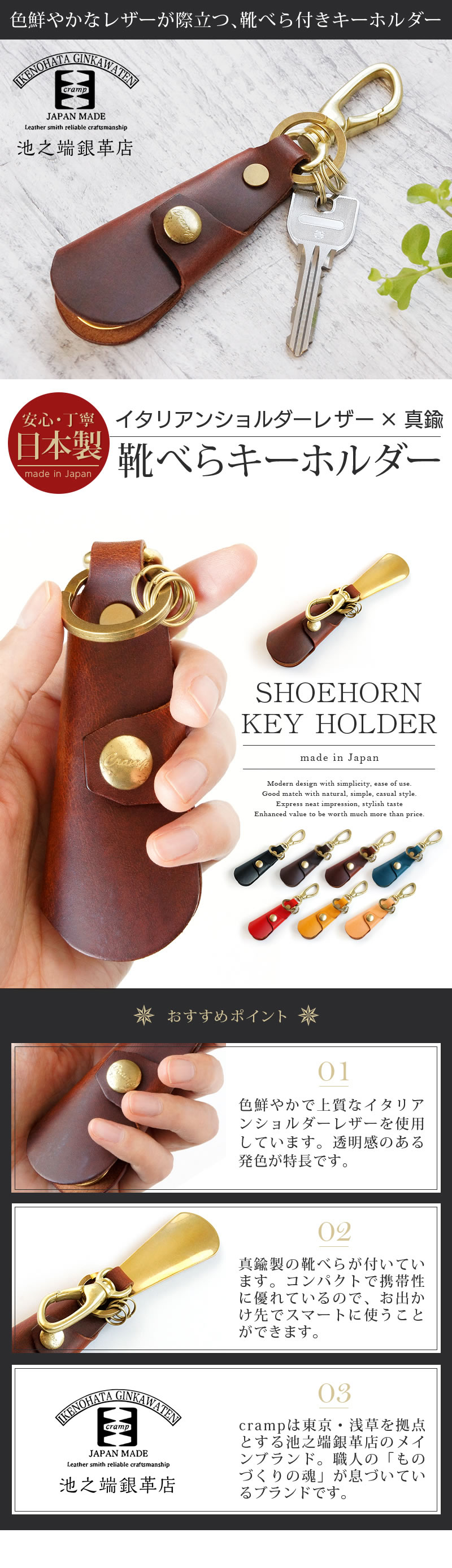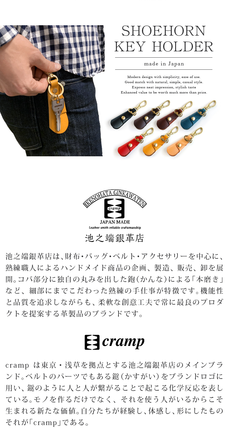 『池之端銀革店 cramp イタリアンレザー 靴べらキー ホルダー』 本革 日本製