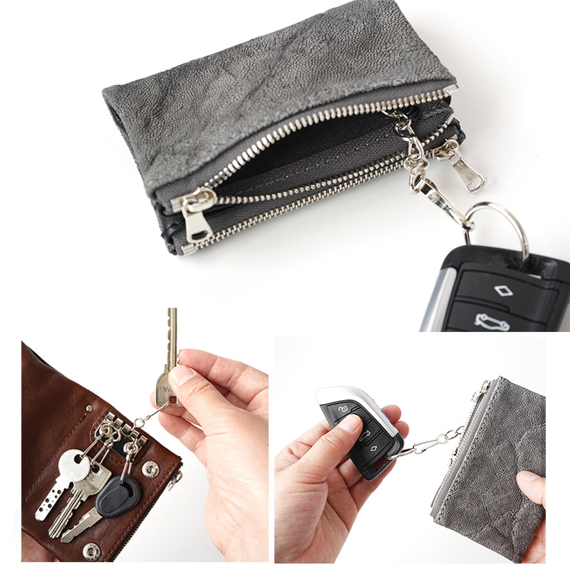 ■ 希少価値の高い、象革を使用した小銭入れ付きキーケース。
