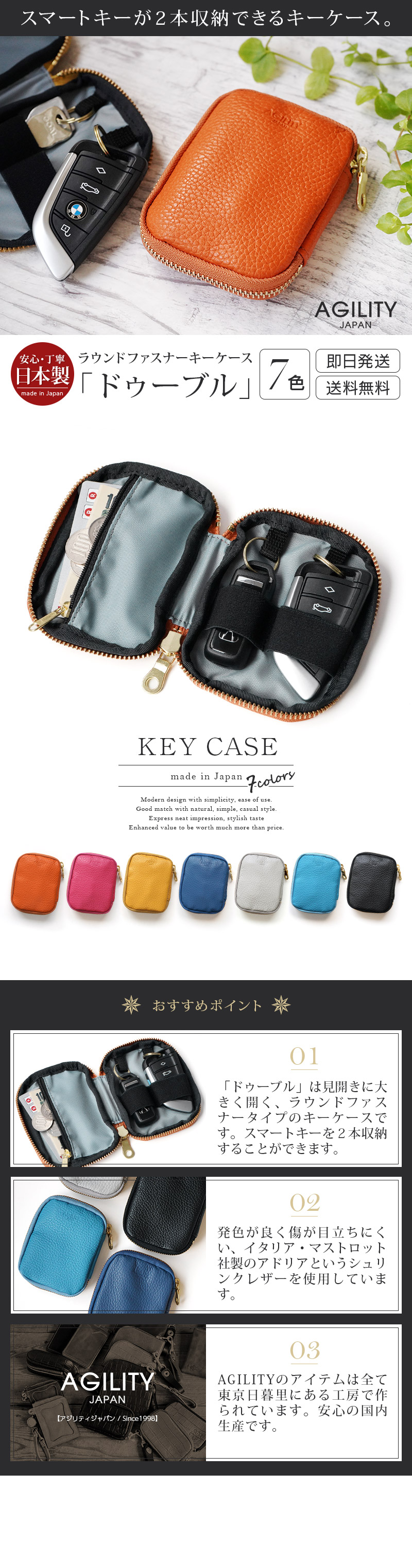 【イタリアンシュリンクレザー ADRIA】キーケース ドゥーブル AGILITY 本革 日本製
