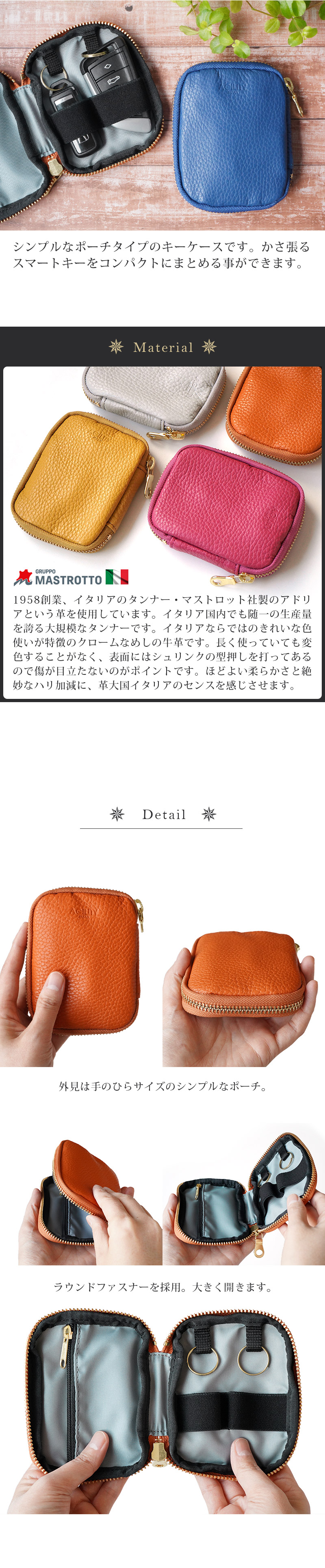 商品特長 ■ 本革製 ラウンドファスナー の キーケース です。
