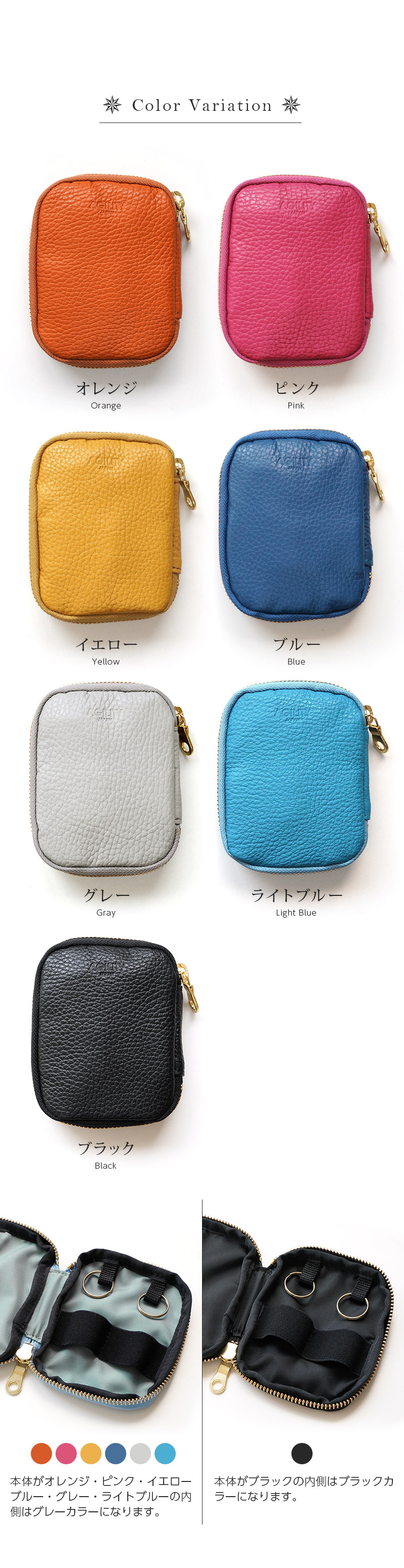 ■本体がオレンジ・ピンク・イエローブルー・グレー・ライトブルーの内側はグレーカラーになります。