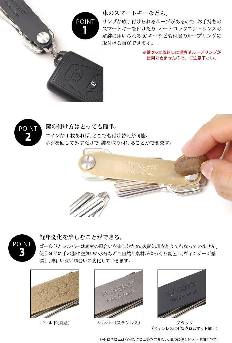『SWAGgear KEY CREW キークルー キーオーガナイザー』 スマートキー 鍵 日本製 おすすめ