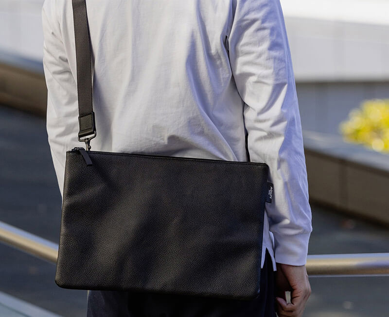 タブレットケースにもなる薄型ショルダー&クラッチバッグです。 ショルダーバッグにもなるシンプルなクラッチバッグ。ペーパーレス化が進み、ほとんどの仕事をPCやタブレットでこなす、現代のノマドワーカーをイメージした、使い勝手の良いバッグです。