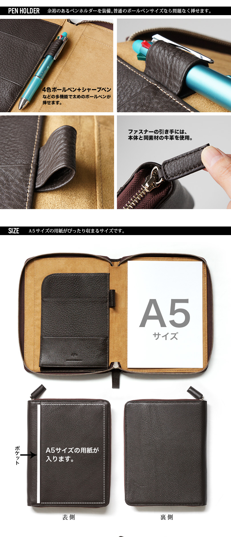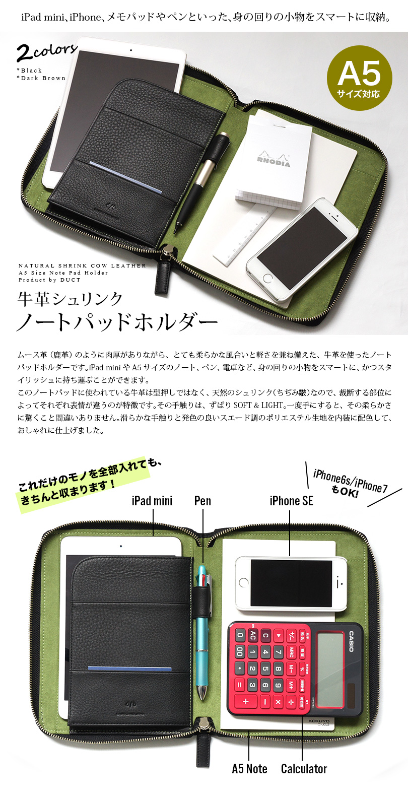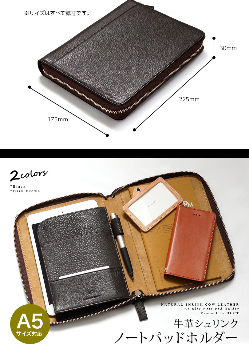 『DUCT 牛革 ノートパッドホルダー NP-645』 本革 シュリンク レザー ノートカバー A5 ファスナー