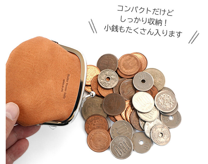 がま口がパカっと大きく開き中身が見やすく、みつけやすい。4つ折りにした予備のお札も収納可能。急に現金が必要になったときにも安心です。
