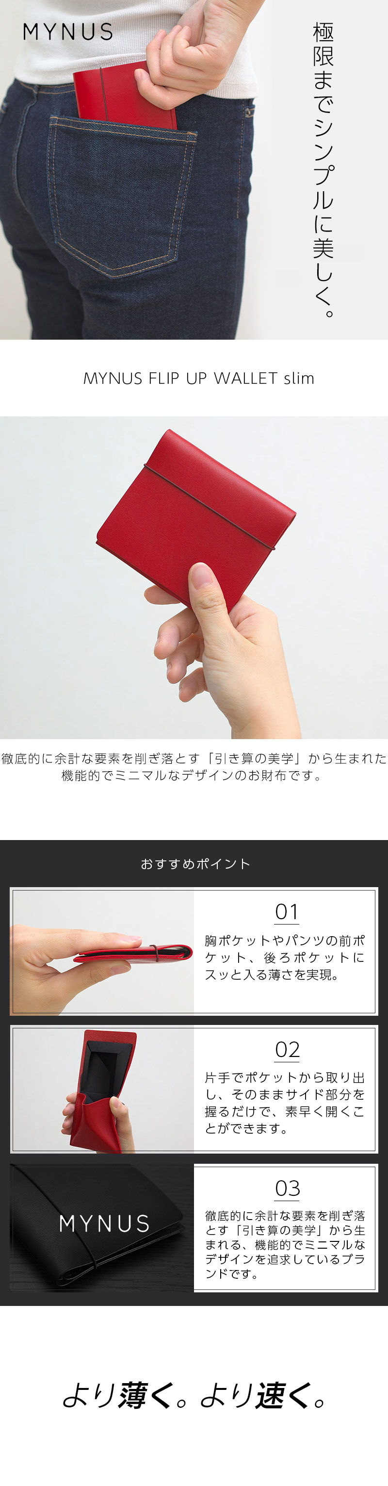 『MYNUS FLIP UP WALLET slim』 薄い財布【カード収納なし】