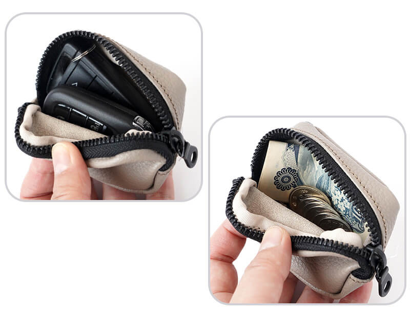 車のスマートキーは2つ入ります。 小銭を入れたり、お薬などこまごまとしたものの収納にも便利。