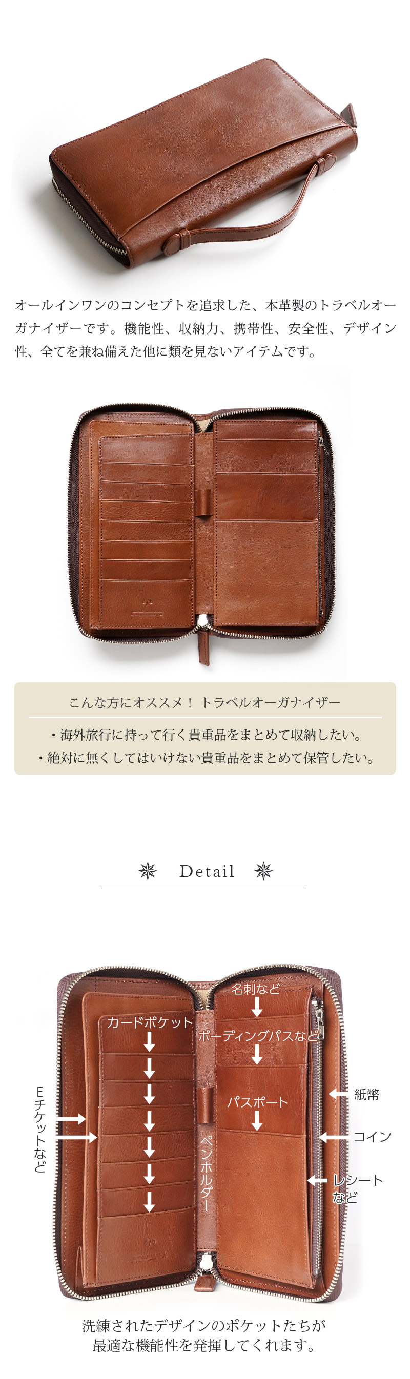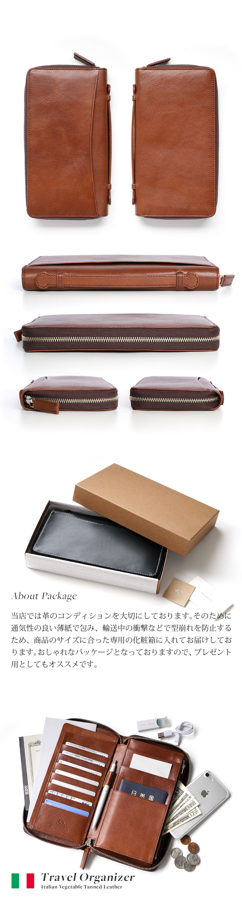 ■オールインワンのコンセプトを追求した、本革製のトラベルオーガナイザーです。機能性、収納力、携帯性、安全性、デザイン性、全てを兼ね備えた他に類を見ないアイテムです。